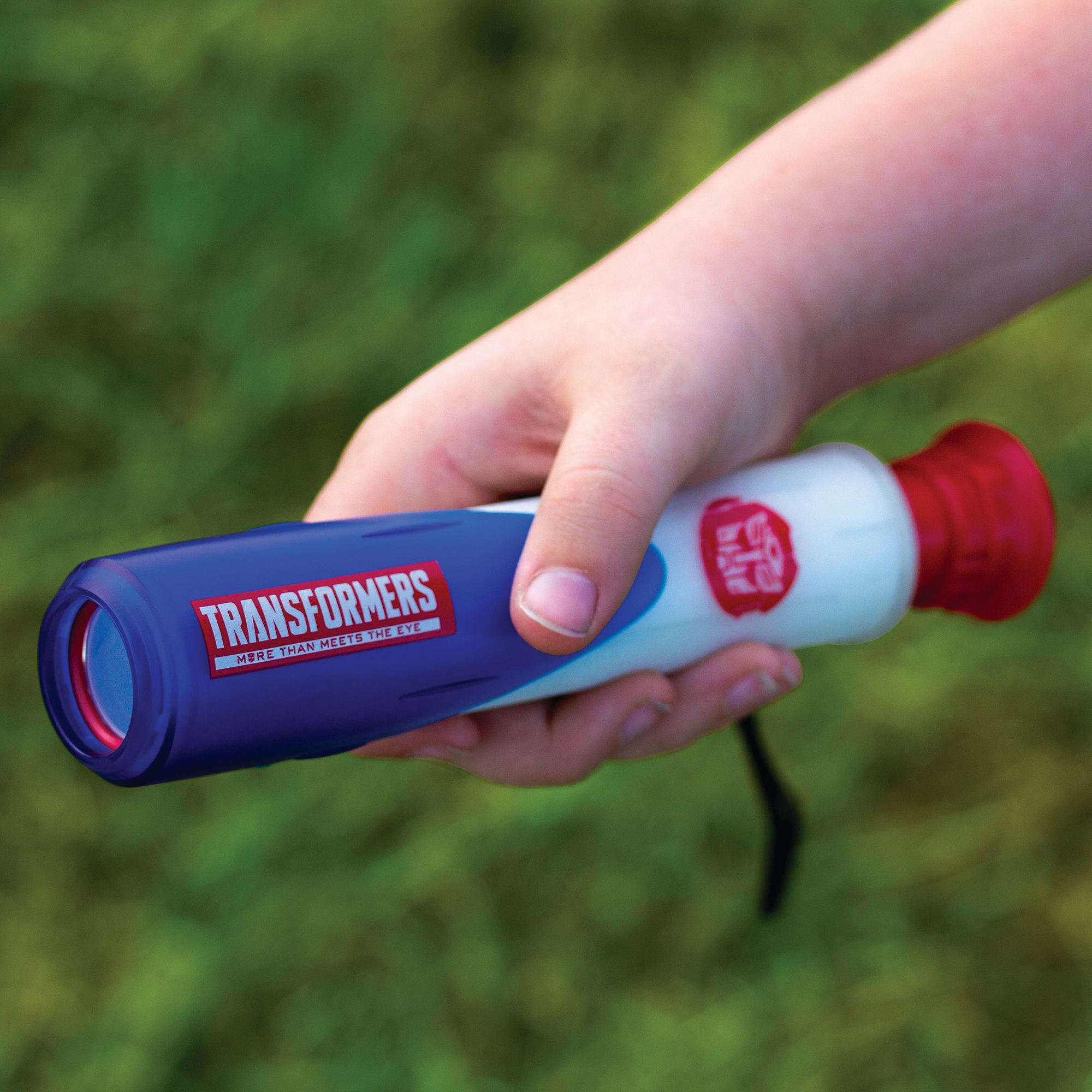 The Transformers Junior Telescope gives your eye the power boost it needs to see amazing details in far-away objects both in space and on land! Whether you are exploring the Moon or watching wildlife, its 6x magnification can really level up your observations by showing you up-close views of things like craters on the Moon or patterns in a bird’s feathers. The sliding tube lets you focus quickly to track moving targets, and the collapsible tabletop tripod is perfect for long viewing sessions. For futuristic fun, the telescope tube also glows in the dark!