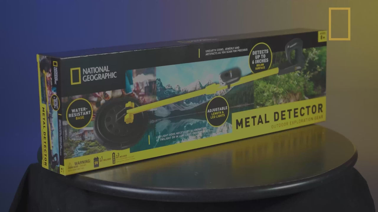 Discover hidden valuables and possibly uncover clues to the past using the National Geographic Metal Detector. With this easy-to-use device, treasure hunters can unearth coins, jewelry and antique pieces buried up to 6 inches below the surface. The detector uses different tones to identify various precious metals and has a water-resistant base so it can even be used to search puddles and other moist areas. It is height adjustable, has a mounted LED light for twilight searching.